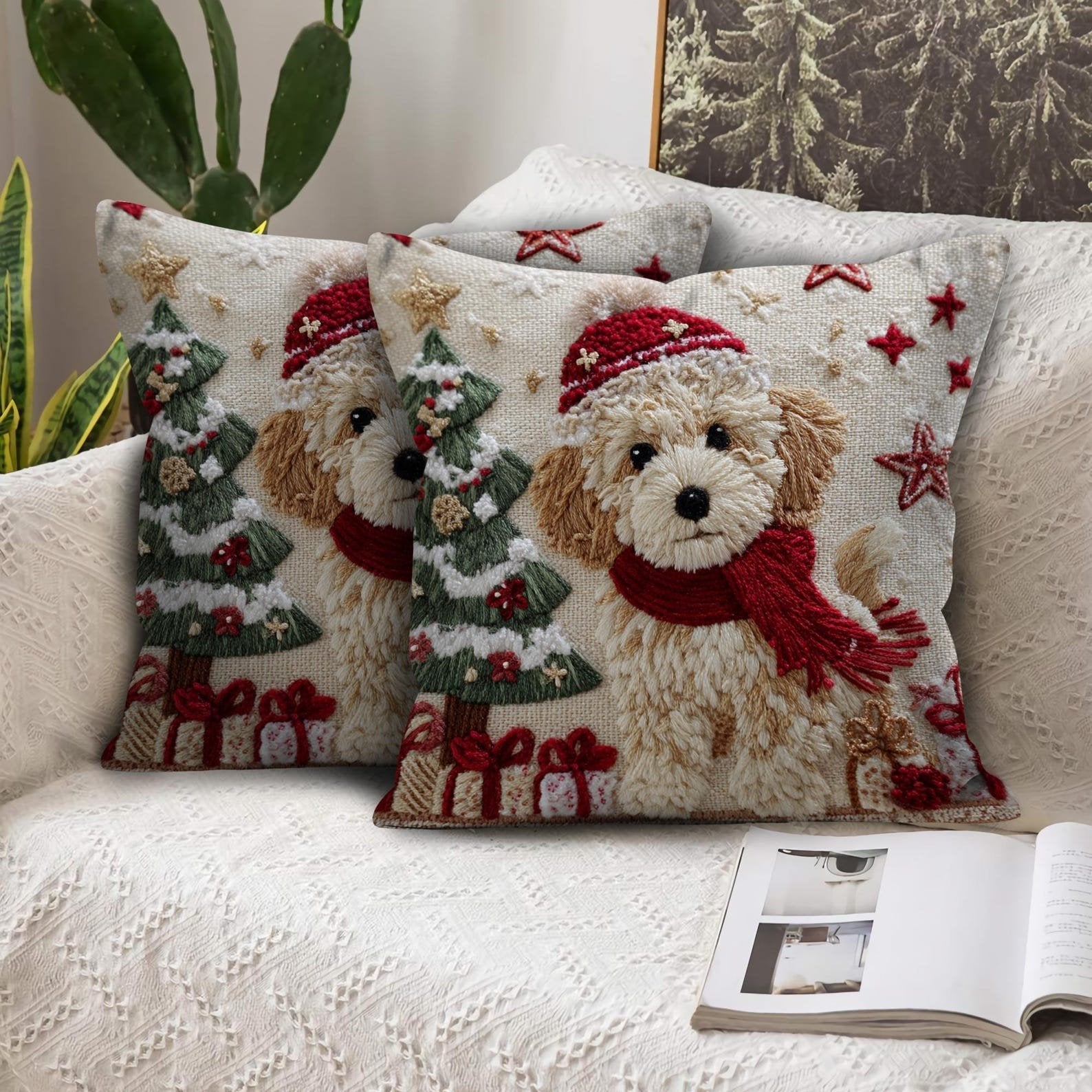 đđ¶ Christmas Cockapoo Embroidered Pillow â Cozy Holiday Decor